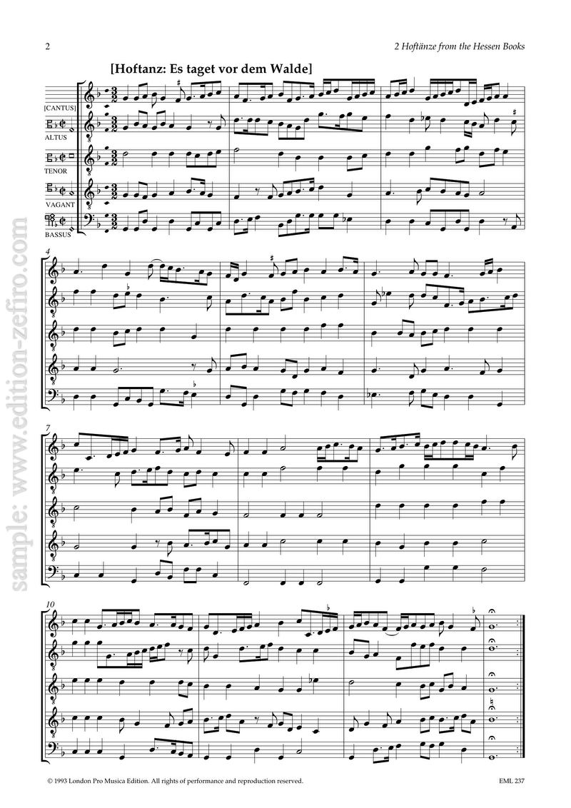 Unfortunately the main source for the German Hoftanz, the Hessen prints of 1555 has the cantus part missing. Here we have attempted to reconstruct the missing part.