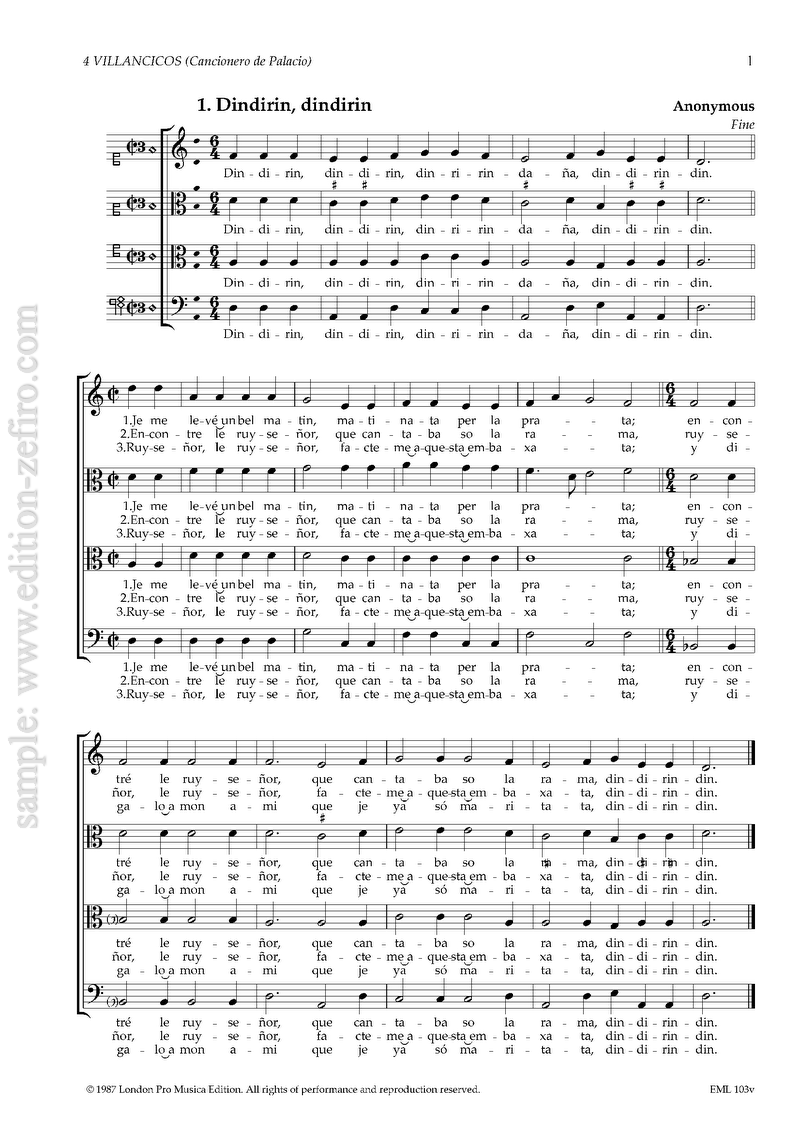 The Cancionero de Palacio, written around 1510 is the greatest collection of Spanish secular music, with many songs that have become classics. Two such are included here, Dindiridin and Pase el agoa, both dance, songs. Dentro en el vergel, by contrast is a short intense love song of outstanding beauty.