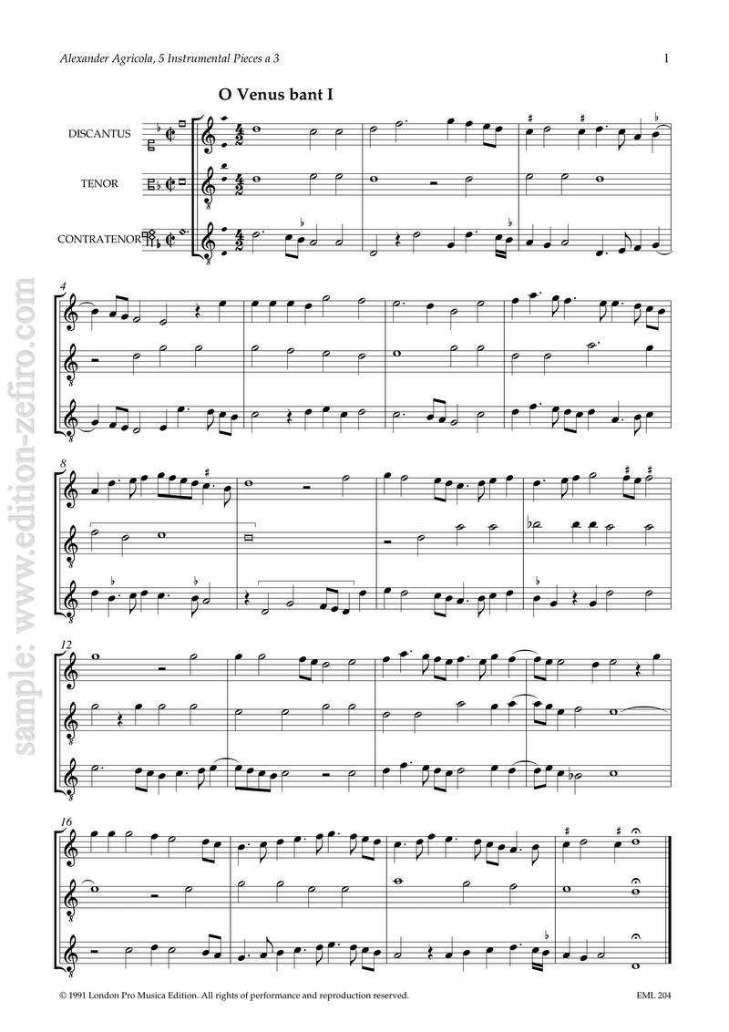 The five songs by Alexander Agricola include Amours, amours / Je ne puis plus / L’homme banni / O venus bant.