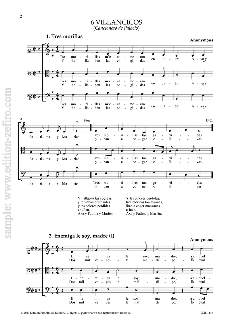 The Cancionero de Palacio, written around 1510 is the greatest collection of Spanish secular music, with many songs that have become classics. These little pieces are very varied, with a couple of outrageously sardonic numbers (Dale si le das and Calebaza no sé), and the exquisite Tres morillas.