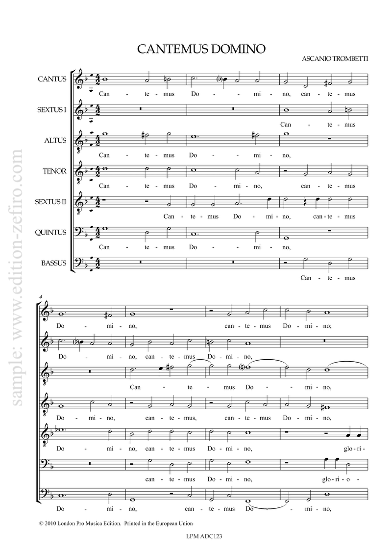 This motet comes from Trombetti’s Il Primo Libro de Motetti, (Venice, 1589). Trombetti was a cornetto player who worked at San Petronio in Bologna. Several of the pieces in the collection are headed da concerto, presumably indicating a mixture of voices and instruments. All of his pieces work extremely well on cornetts and sackbuts, as one might expect.