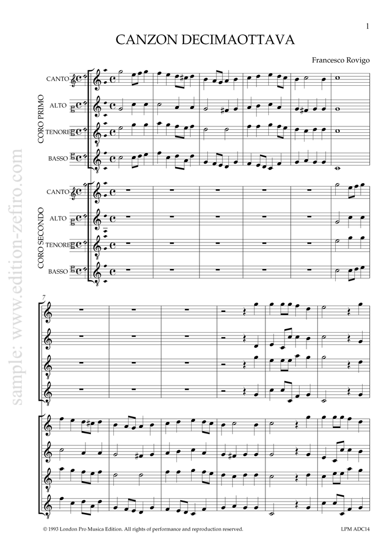 Printed after Partitura delle Canzoni da Suonare… Di Francesco Rovigo et Ruggier Trofeo, Organisti Eccellentissimi. Milan, 1613