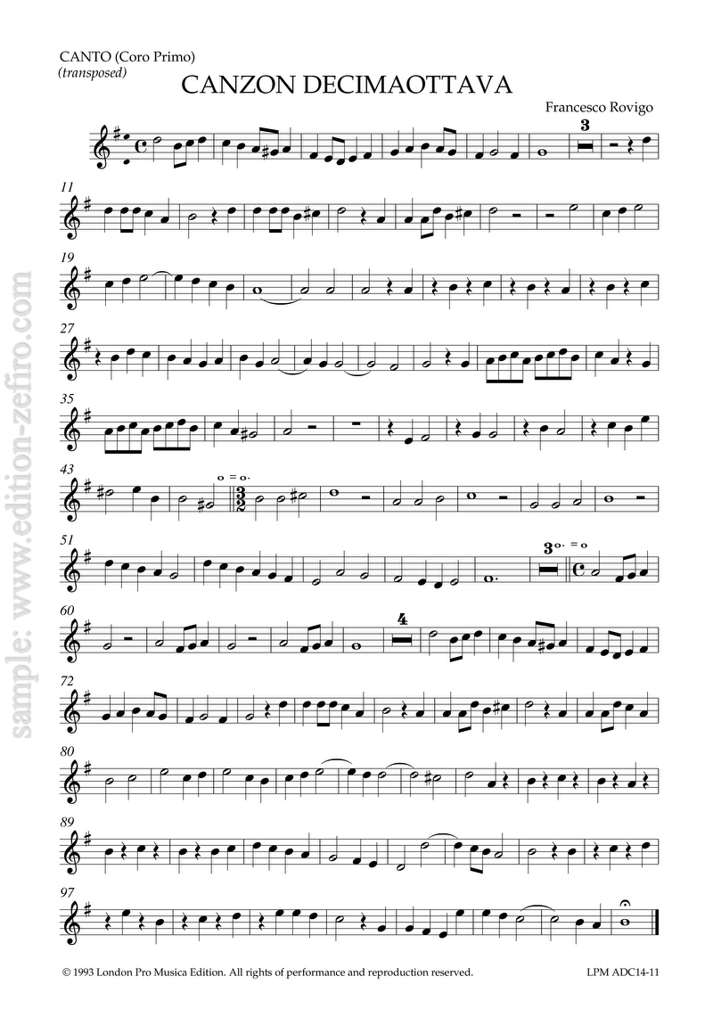 Rovigo: Canzon Decimaottava à8 (set of transposed parts)