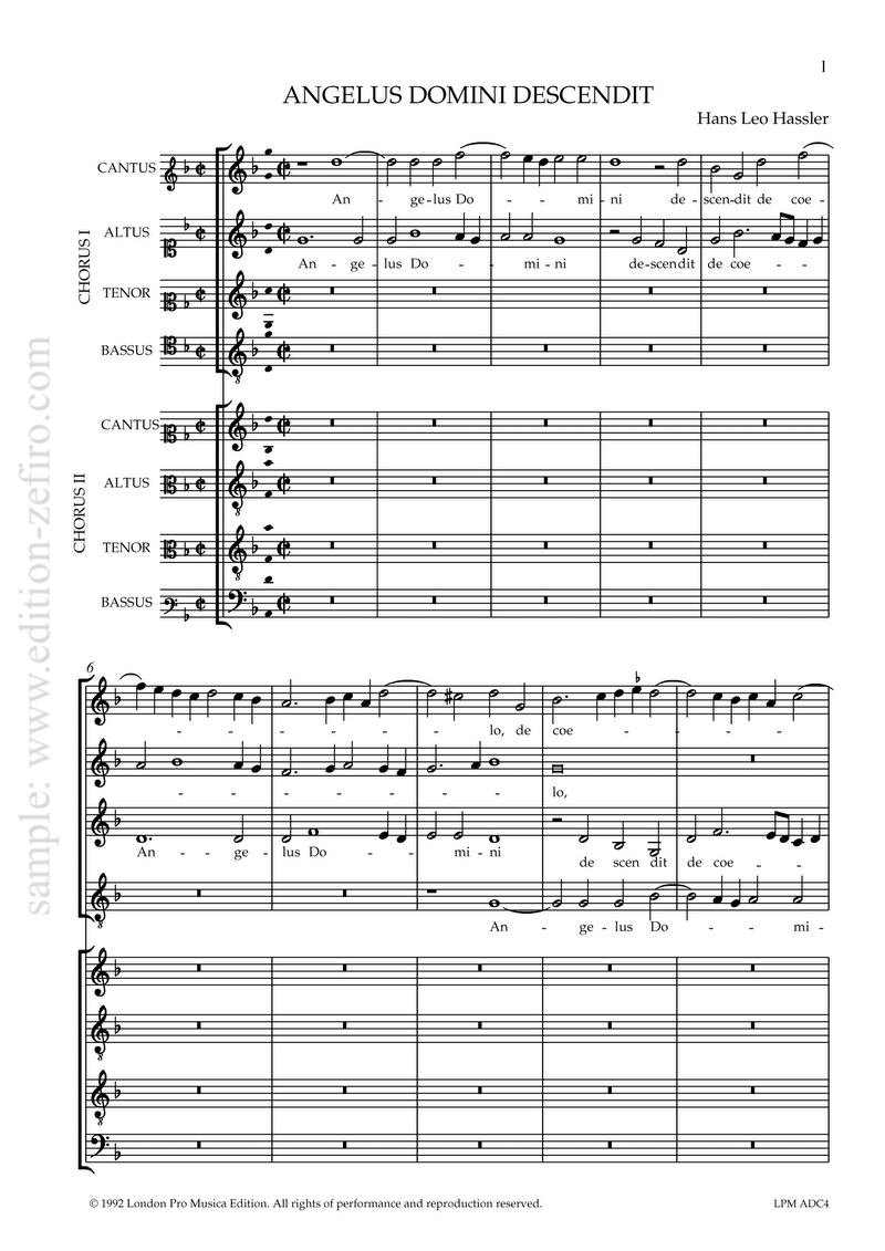 Categories: Instrumental music, Vocal music. Tags: 1600, 2 choirs, 8 part, ADC, Early Baroque, German, Hans Leo Hassler, Motet, SATB + SATB.