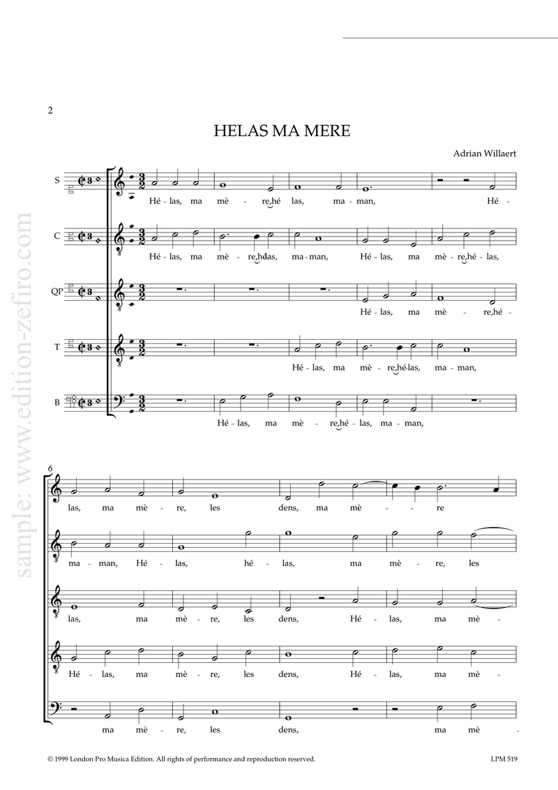 Willaert specialised in chansons in 5 or 6 parts, which gave him scope for his contrapuntal skills.
