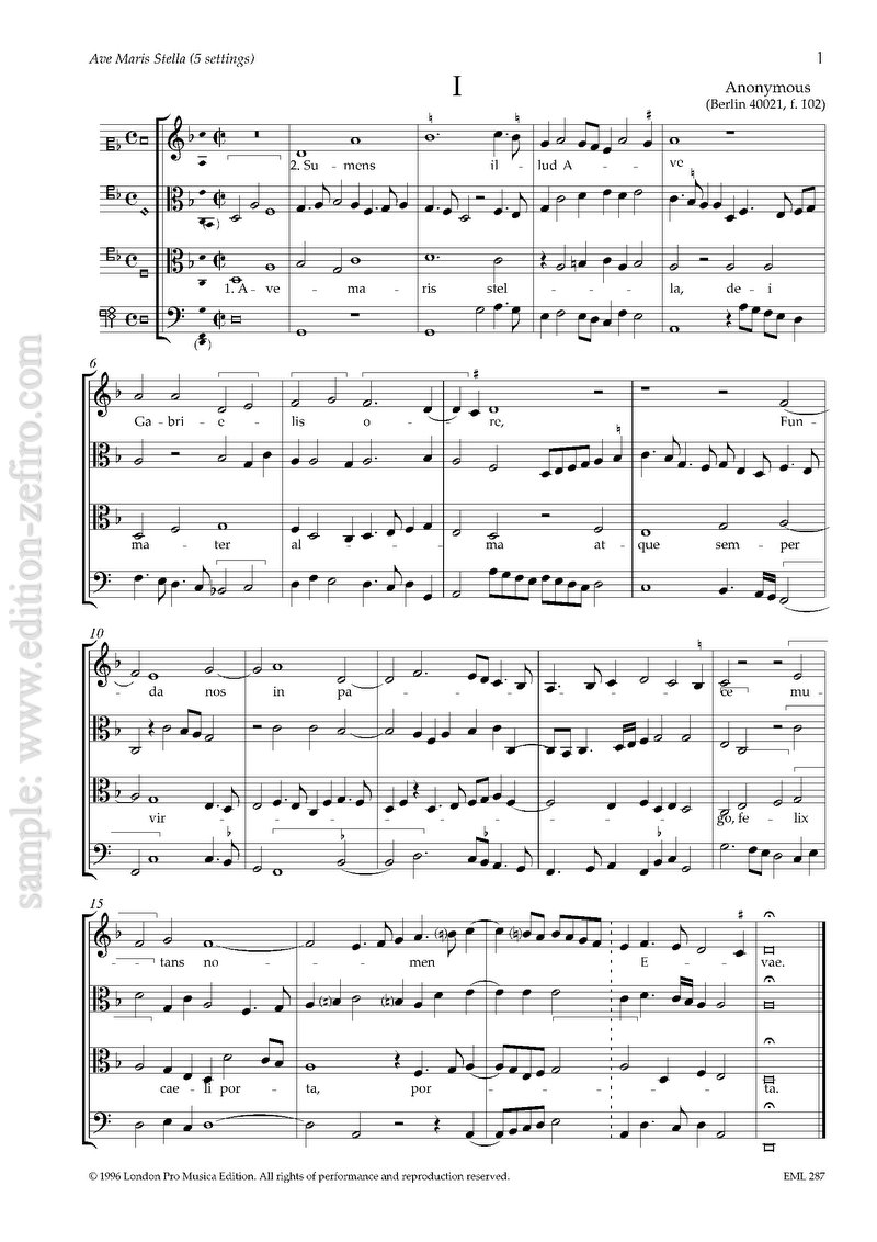 Ave Maris stella (5 settings c. 1500) (viols)