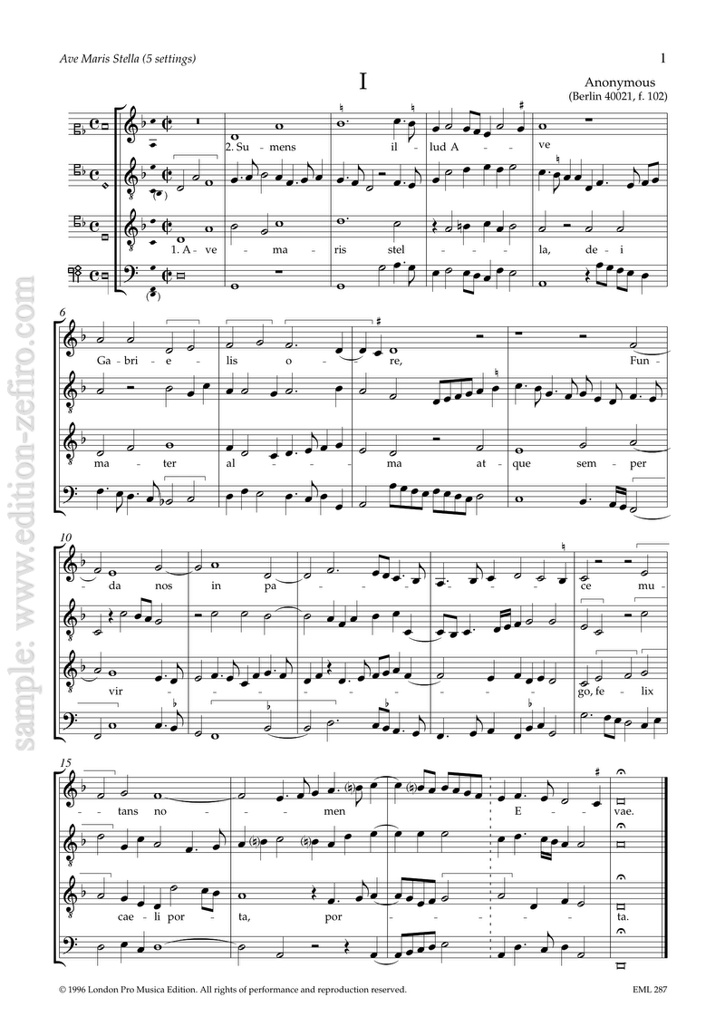 These beautifully elaborate settings of this classic plainsong melody Ave Maris stella are mostly from German collections, including the Codex of Nicolas Apel.