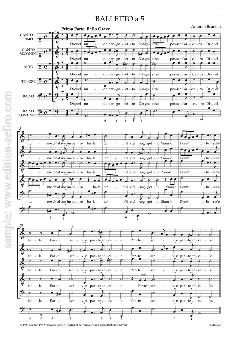 Categories: Instrumental music, Violin. Tags: 1620, 5 part, Antonio Brunelli, Ballo, Dance, Early Baroque, EML, Italian, SSATB.