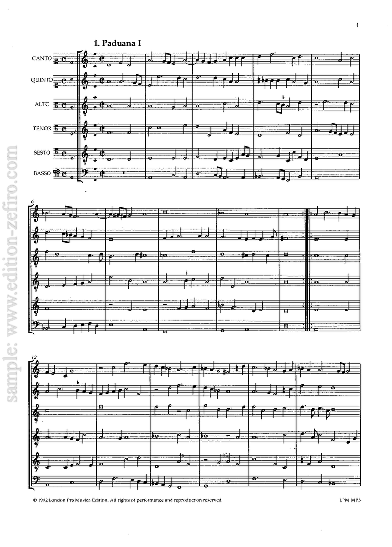 Pavans and Galliards of 1614 contains the only six-part music of William Brade’s that has survived: all his other consort music, the prints of 1609, 1617 and 1621, as well as the few pieces in anthologies, are in five parts. Not only that, but in some ways the 1614 collection is the most innovative: many of the pavane are pavane in name only, and by virtue of having three repeated sections, but actually contain radically different music. Paduana XI introduces two different kinds of triple metres, and opens with the repeated-note motif more characteristic of canzonas or intrados. And Galliard VII has a different metre for each of the three sections, the last of which is in duple time: the effect is more that of an antimasque dance from the Jacobean masque than that of a conventional galliard.