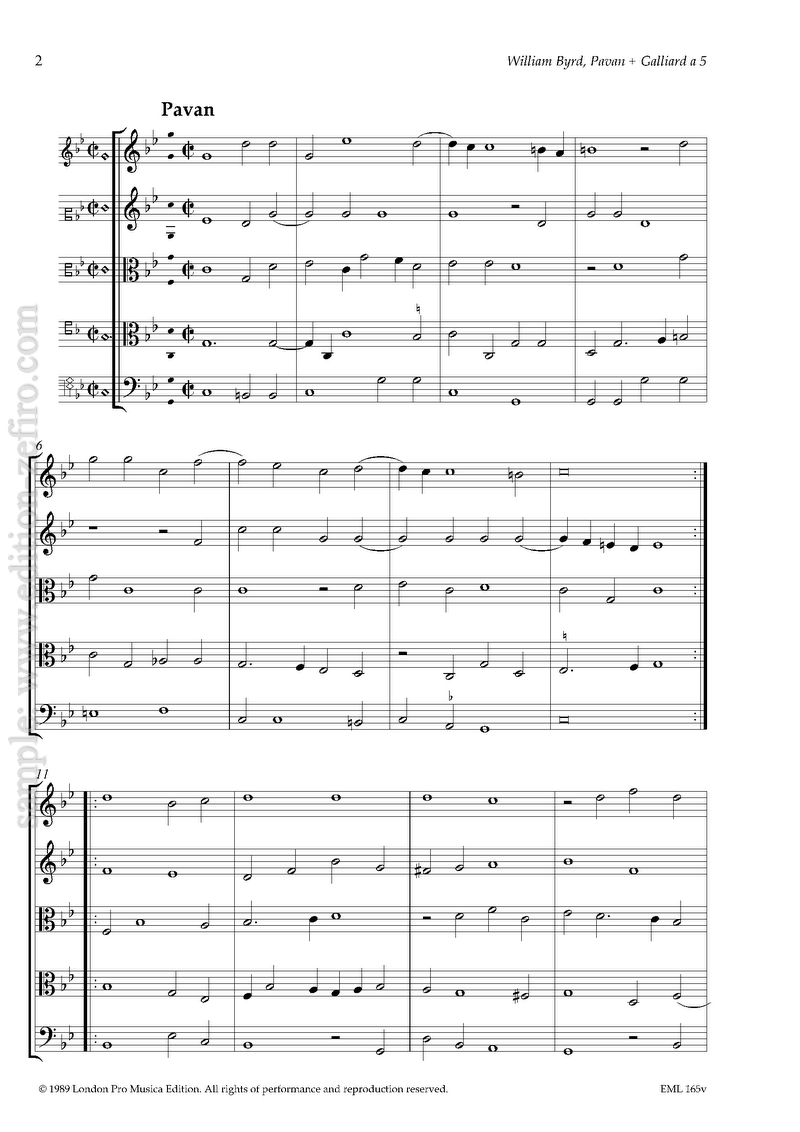 This five part Pavan & Galliard by William Byrd includes an original 5th part from Kassel.