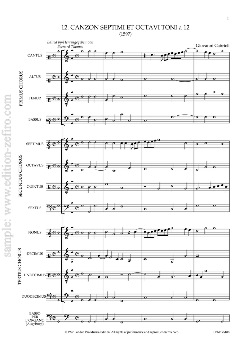 Gabrieli: Canzon Septimi et Octavi Toni à12 (1597)