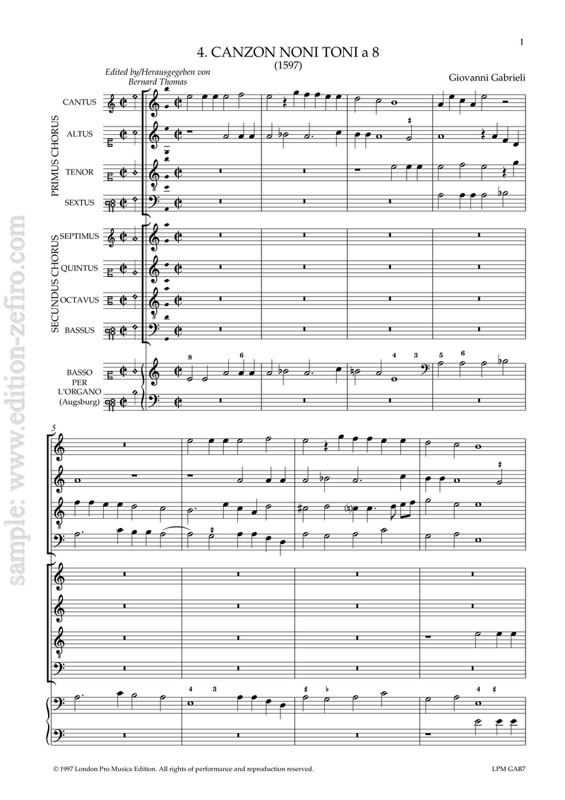 Category: Instrumental music. Tags: 1590, 2 choirs, 8 part, Canzone, Early Baroque, GAB, Giovanni Gabrieli, Italian, Published 1597, SATB + SATB.