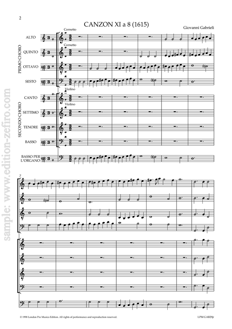 Canzon XI à8 (1615) is taken from the posthumous 1615 collection of the works of Giovanni Gabrieli. The collection contains an extraordinary range of pieces in from 5 to 22 parts. A real advance from the 1597 print.