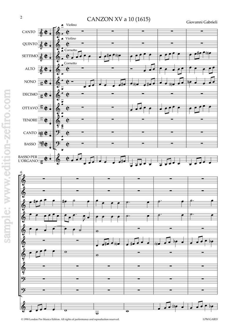 Category: Instrumental music. Tags: 10 part, 1590, Canzone, Early Baroque, GAB, Giovanni Gabrieli, Italian, Published 1615, SSSSA + SSABB.