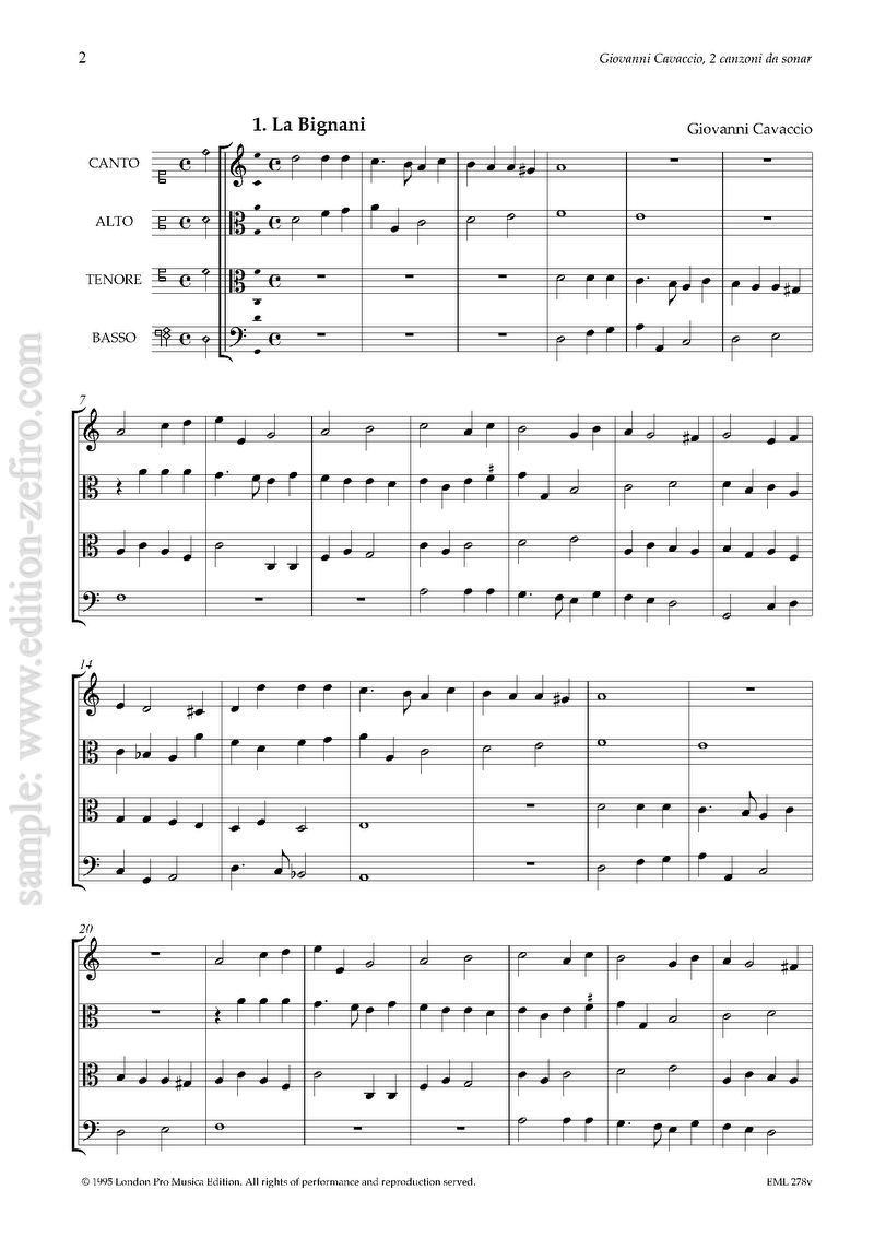These canzoni come from Giovanni Cavaccio’s Musica. ove si contengono 2 fantasie canzoni alla francese pavana co’l saltarello, Venice, 1597.