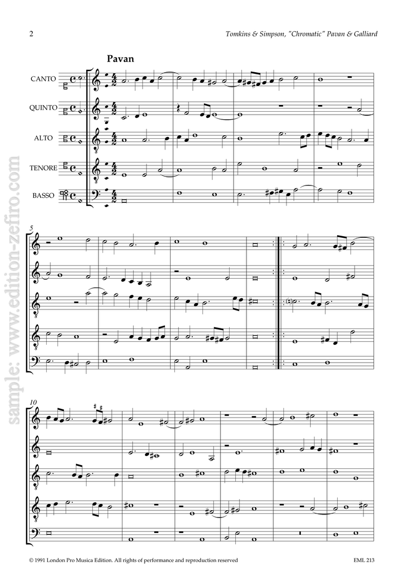 In the present case the part writing in the pavane, is all that of Thomas Tomkins.