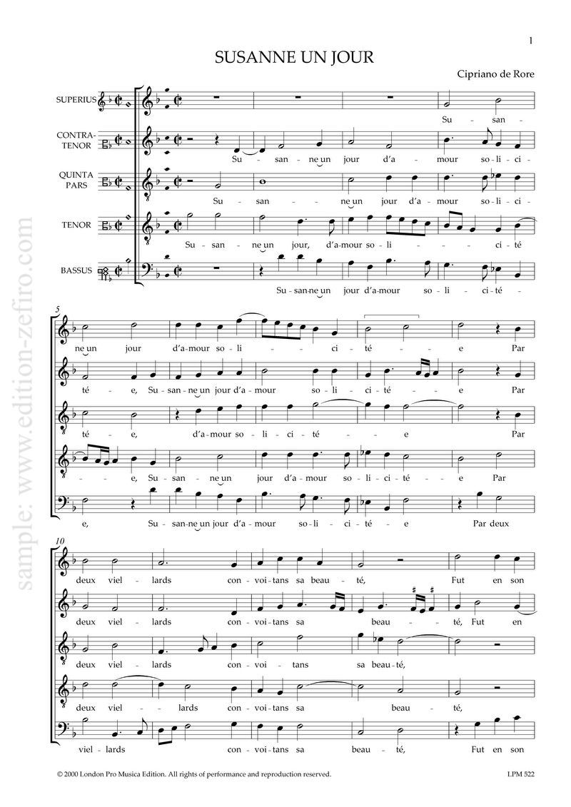 By Cipriano de Rore this piece is one of the finest treatments of Lassus’ popular and widely-arranged chansons – Susanne un jour.