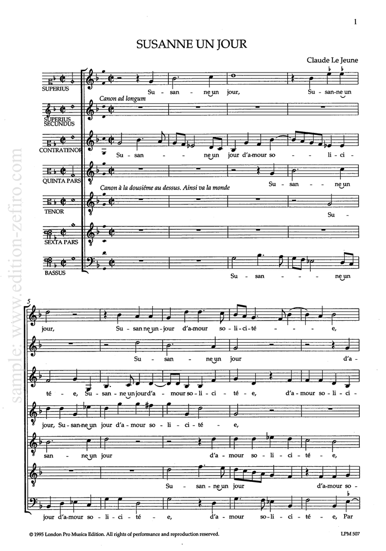 One of many 16th-century reworkings of Lassus’ classic song. This one by Claude Le Jeune has two of the parts in canon.