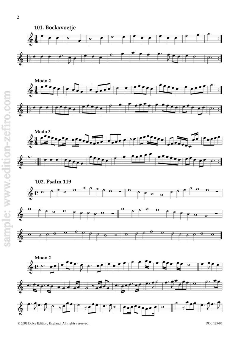 The original title page to FLH does not specify instruments, but the introduction includes illustrations of two instruments. The first is a little recorder nominally in C, with a range of two octaves and a tone (see our front cover), for which the composer gives a fingering system. No instrument corresponding exactly to that illustrated by van Eyck has survived, though similar instruments are frequently illustrated in Dutch paintings of the period. The second is a little alto flute in G, which shares the top note of the recorder, but descends an extra fourth. Unfortunately van Eyck (or his publisher) did not provide fingerings for this, but promised more information in a proposed third volume.