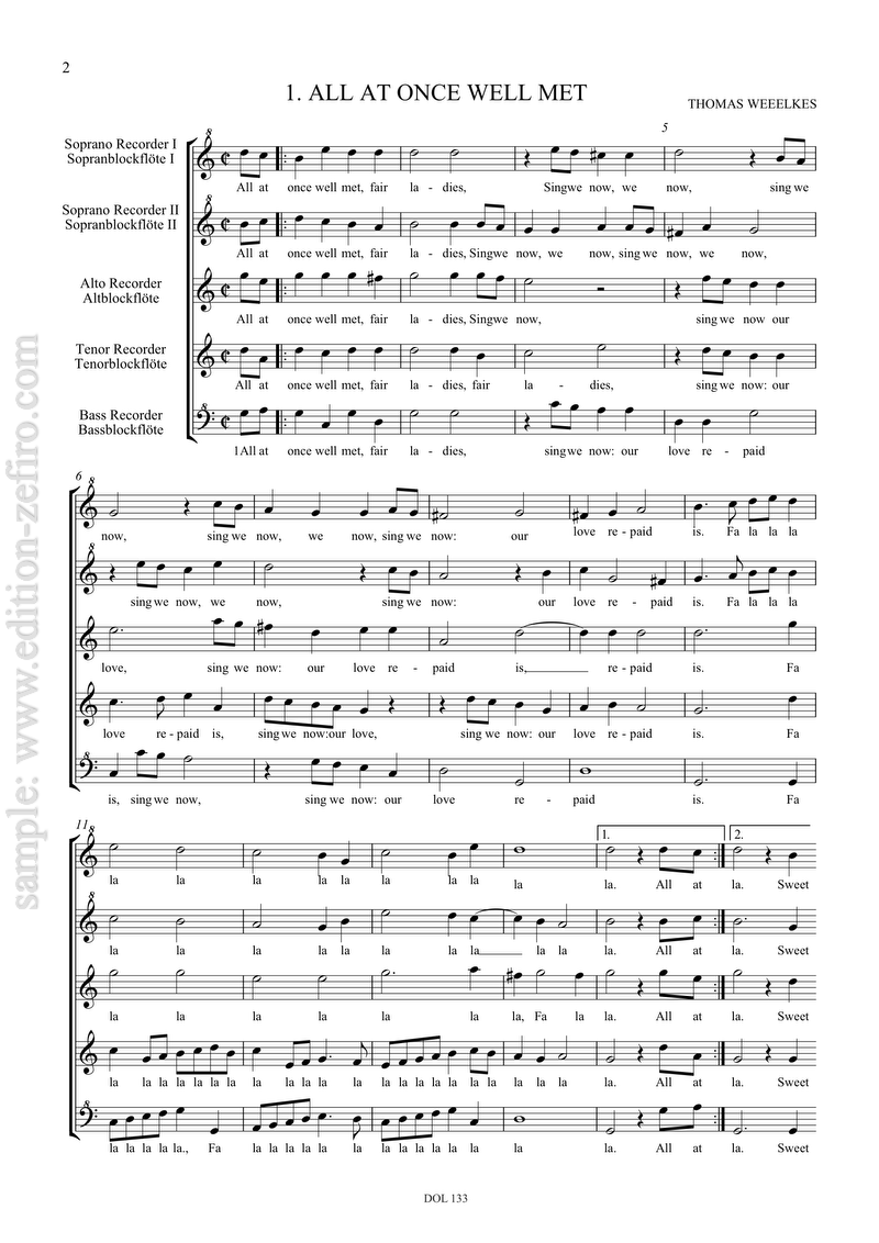 An introduction to English 5-part madrigals, with pieces by Thomas Weelkes, John Wilbye, Thomas Morley, Michael East and John Ward.