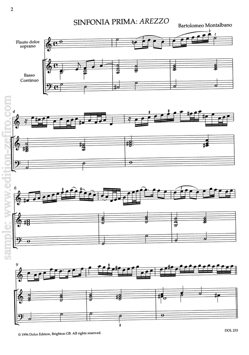 Category: Instrumental music. Tags: 1630, Bartolomeo Montalbano, Early Baroque, Italian, Published 1629, Recorders, Sinfonia, solo + continuo, Soprano recorder.