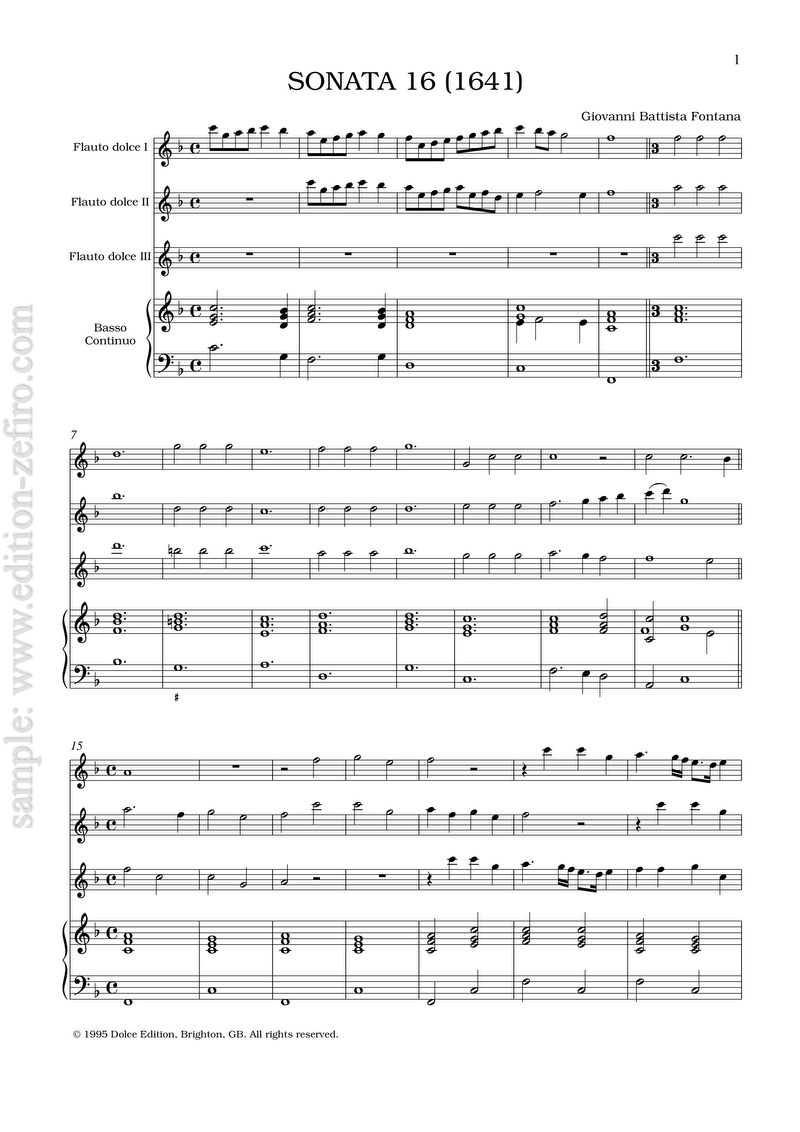 Category: Instrumental music. Tags: 1620, 3 part, AAA, AAA + Continuo, Alto recorder, Early Baroque, Giovanni Battista Fontana, Italian, Published 1641, Recorders, Sonata.
