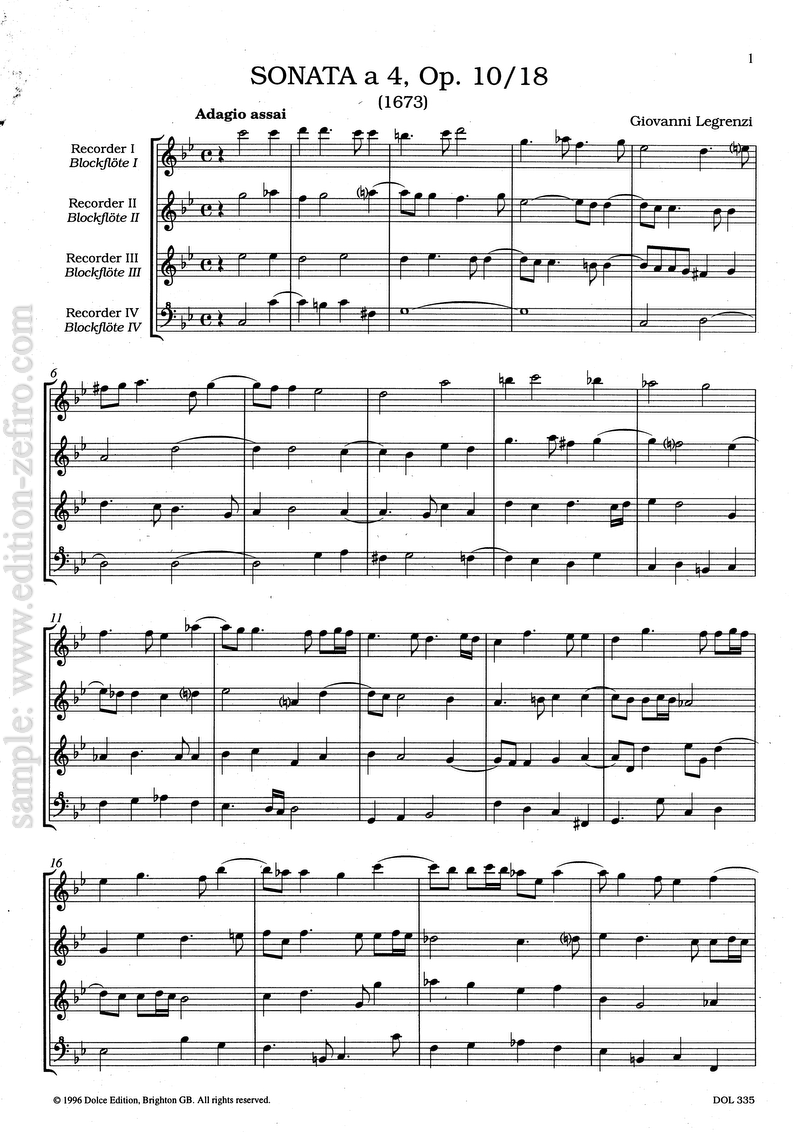 In arranging this work for recorders, very little had to be changed, apart from a few notes in the bass part. We have provided two sets of parts, one at the original key of C minor, suitable for ATTB consort, and one a tone higher for a SATB consort.