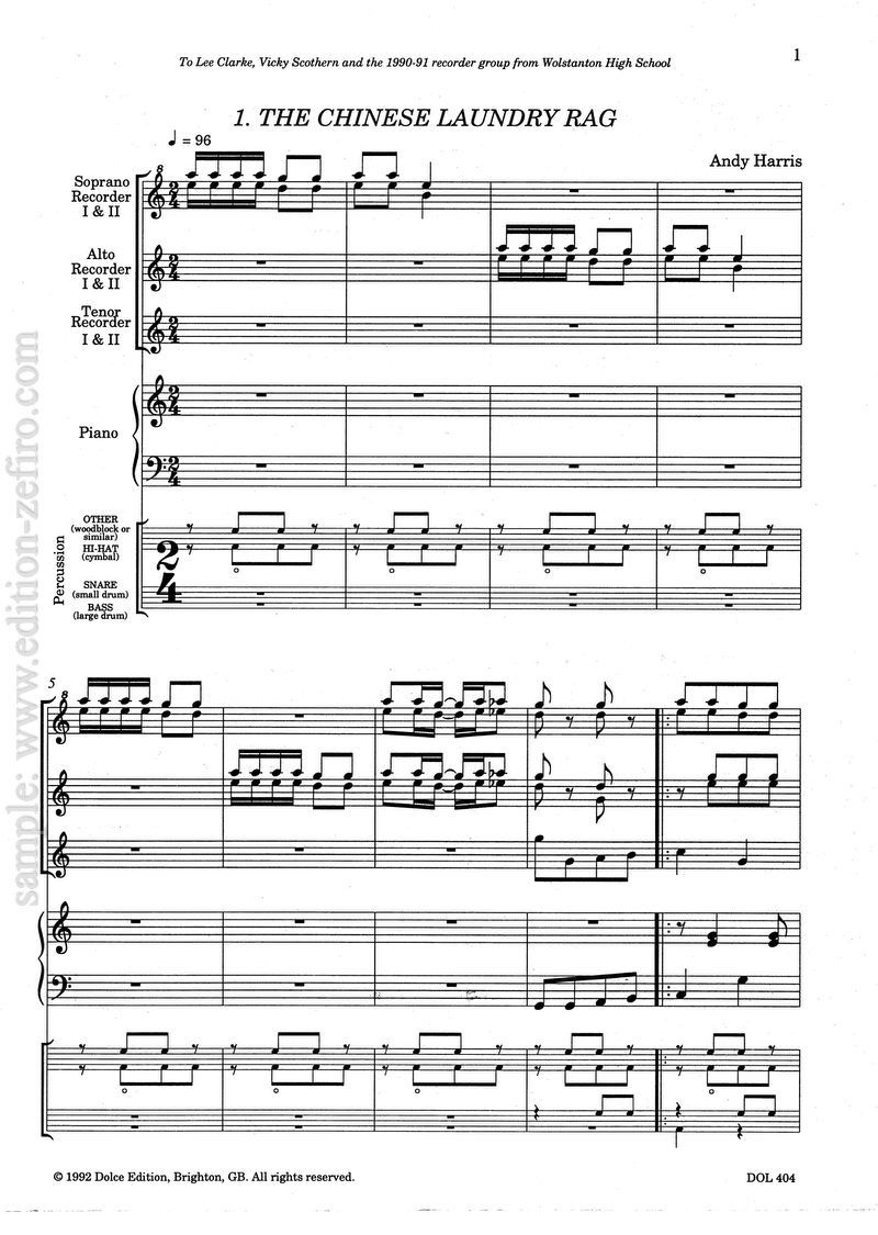 Dedication: “To Lee Clarke, Vicky Scothern and the 1990-91 recorder group from Wolstanton High School”