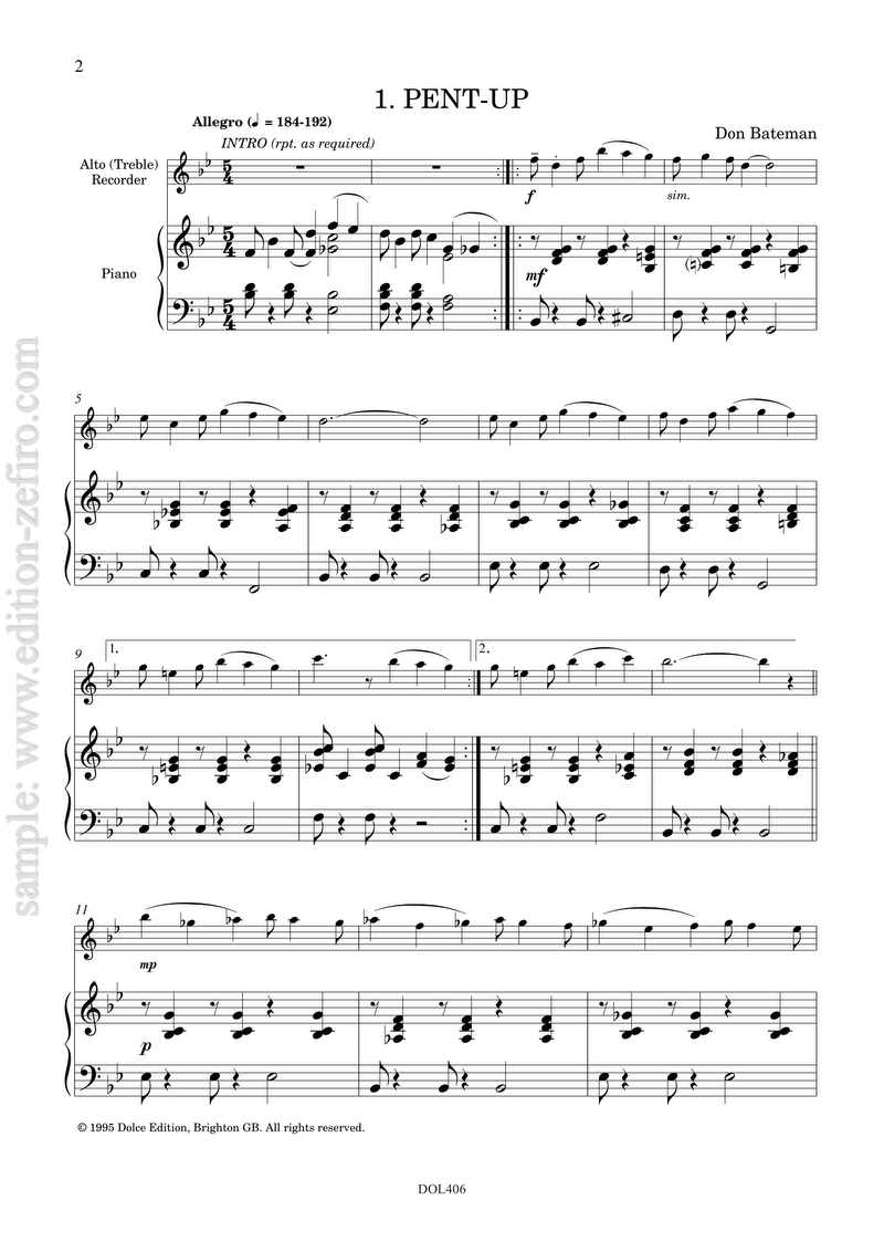 Recorder and piano: Seven varied pieces by Don Bateman to follow up the success of Solos in swing ↣.