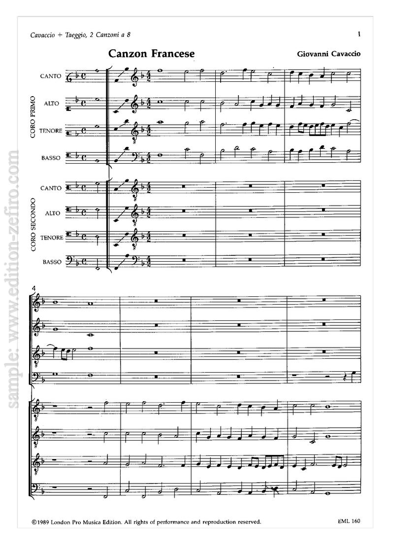 The Cavaccio piece is purely instrumental, whilst La Porta is actually a setting of Jubilate Deo, with effective depiction of the instruments mentioned in the text.
