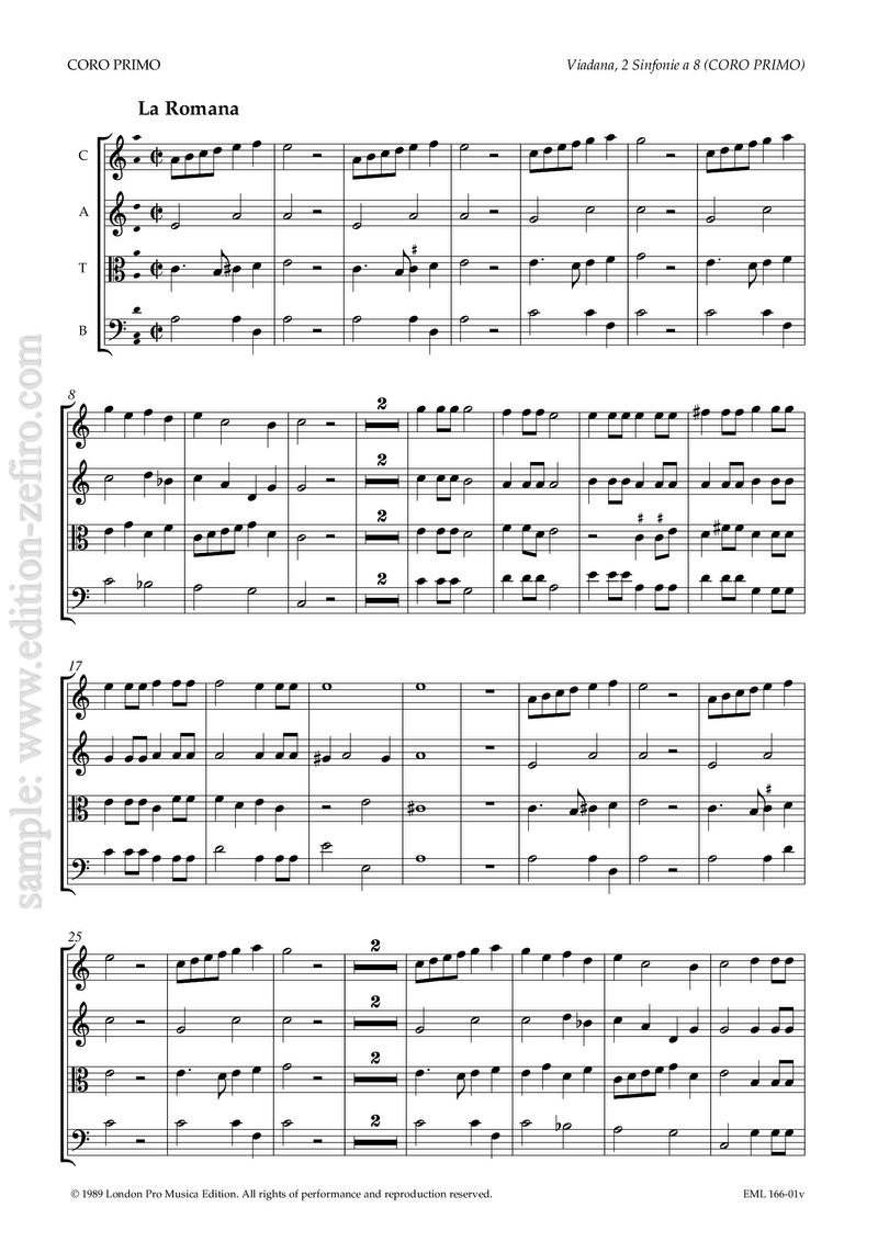The two sinfonie La Romana and La Mantovana. are part of Viadana’s Sinfonie a otto voci being 18 pieces named after Italian Cities.