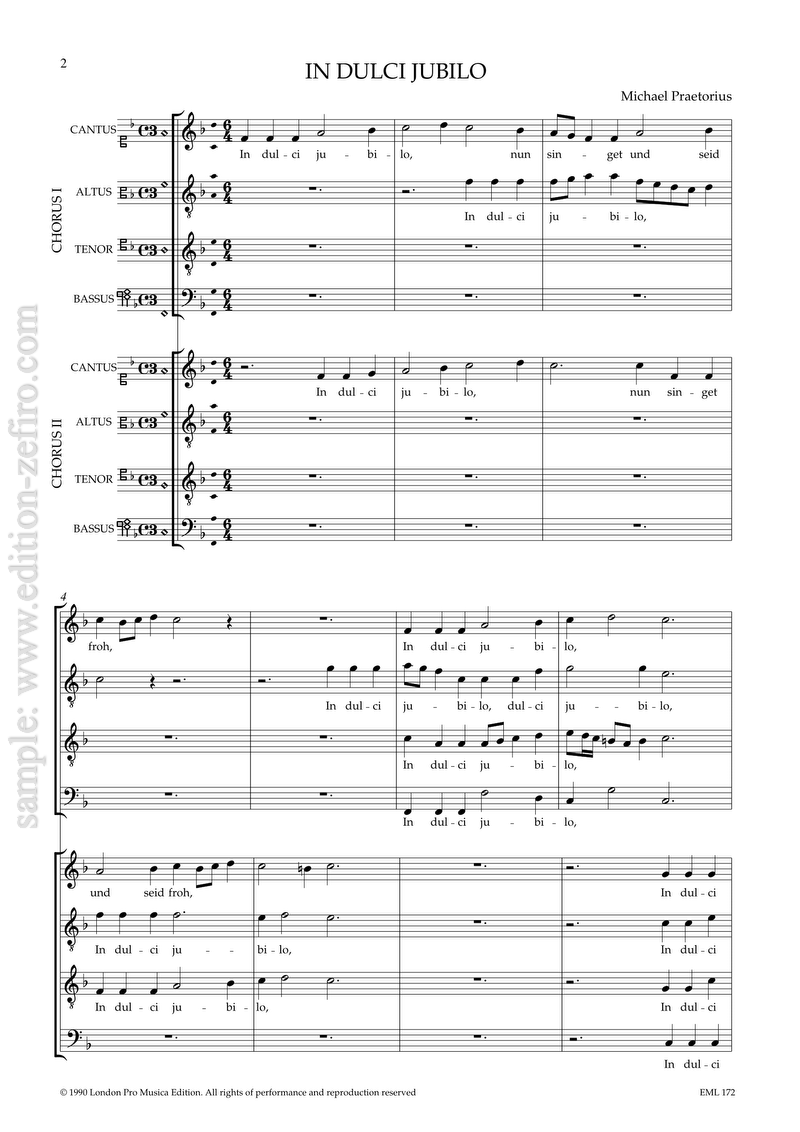 This attractive setting of In dulci jubilo is for 2 equal choirs.