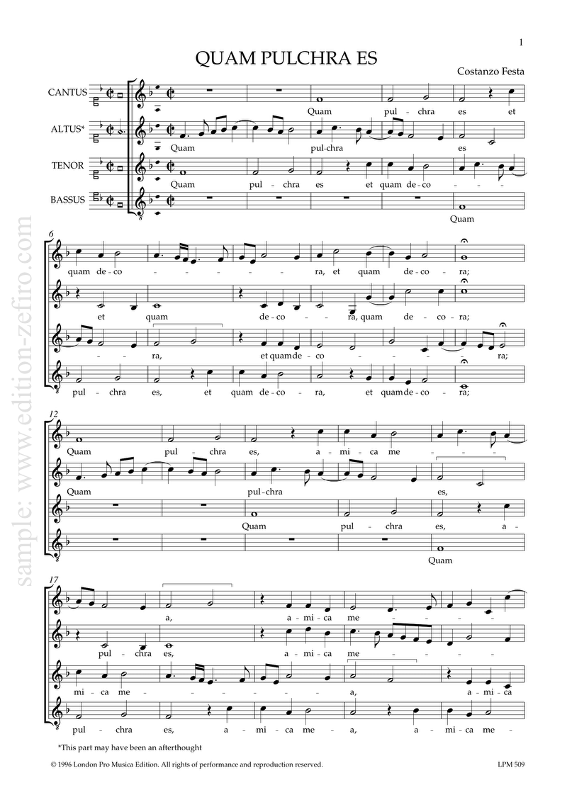 Quam pulchra es by Costanzo Festa is one of many pieces based on the formula La Sol Fa Re Mi (derived from the phrase Lascia fare mi.) There are versions by Josquin, Ruffo, Lassus, Tiburtino etc.