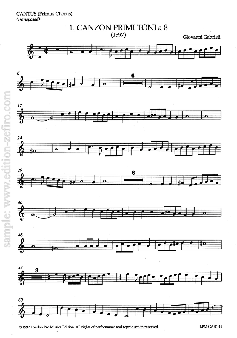 Gabrieli: Canzon Primi Toni à8 (1597) (set of transposed parts)