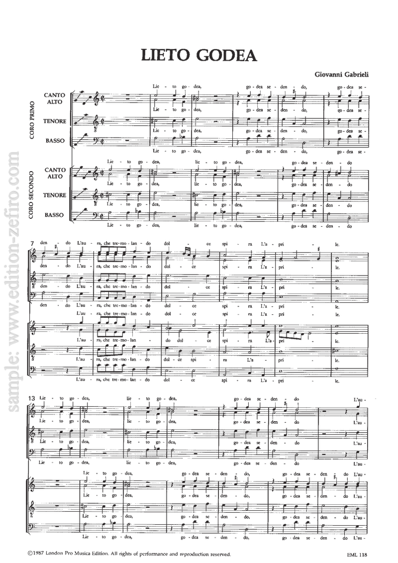 Lieto godea is one of a small group of pieces by Giovanni Gabrieli headed ‘Aria da sonar’.