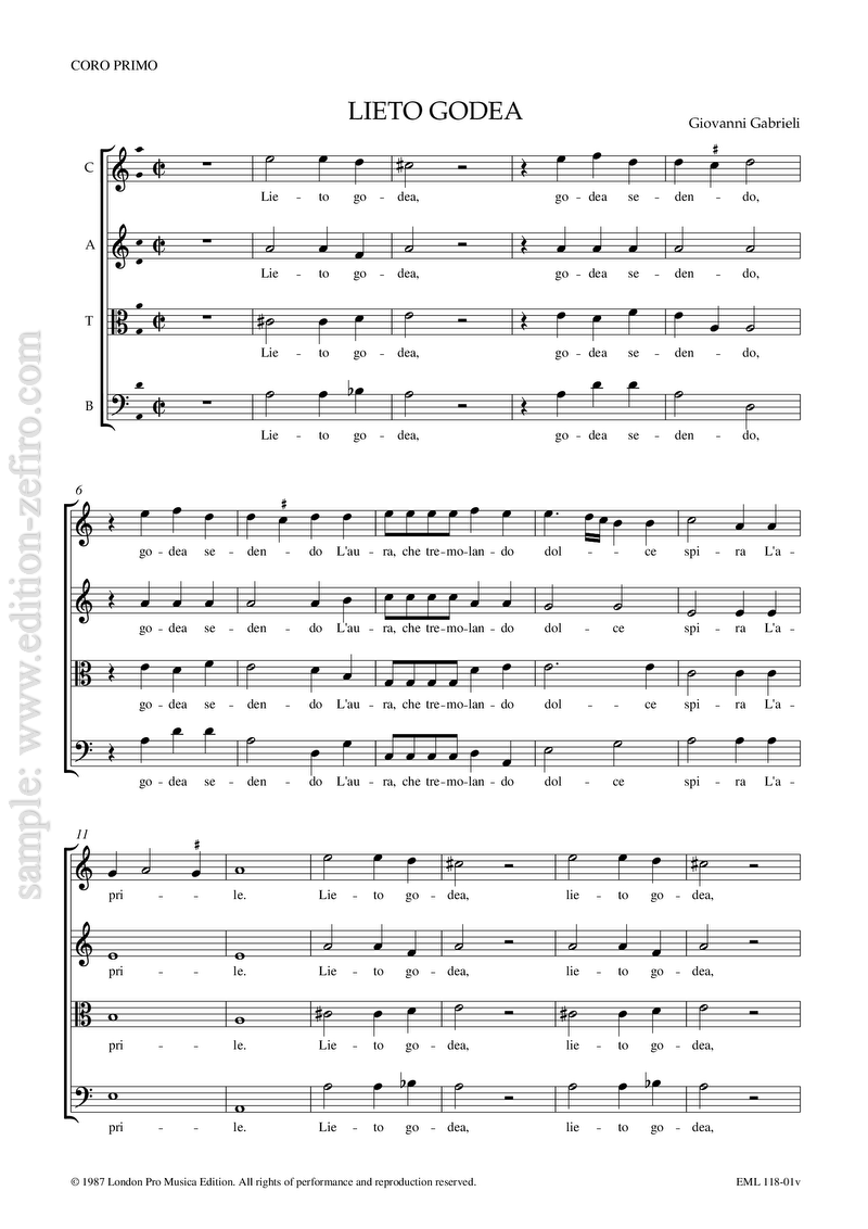 Lieto godea is one of a small group of pieces by Giovanni Gabrieli headed ‘Aria da sonar’.