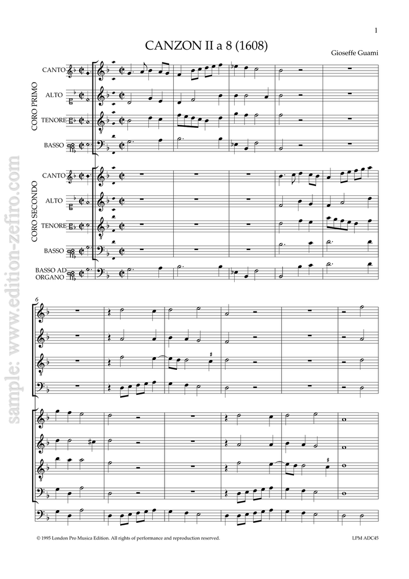 8 part 2 choirs, (SATB + SATB) Print format: score + parts including Basso ad organo