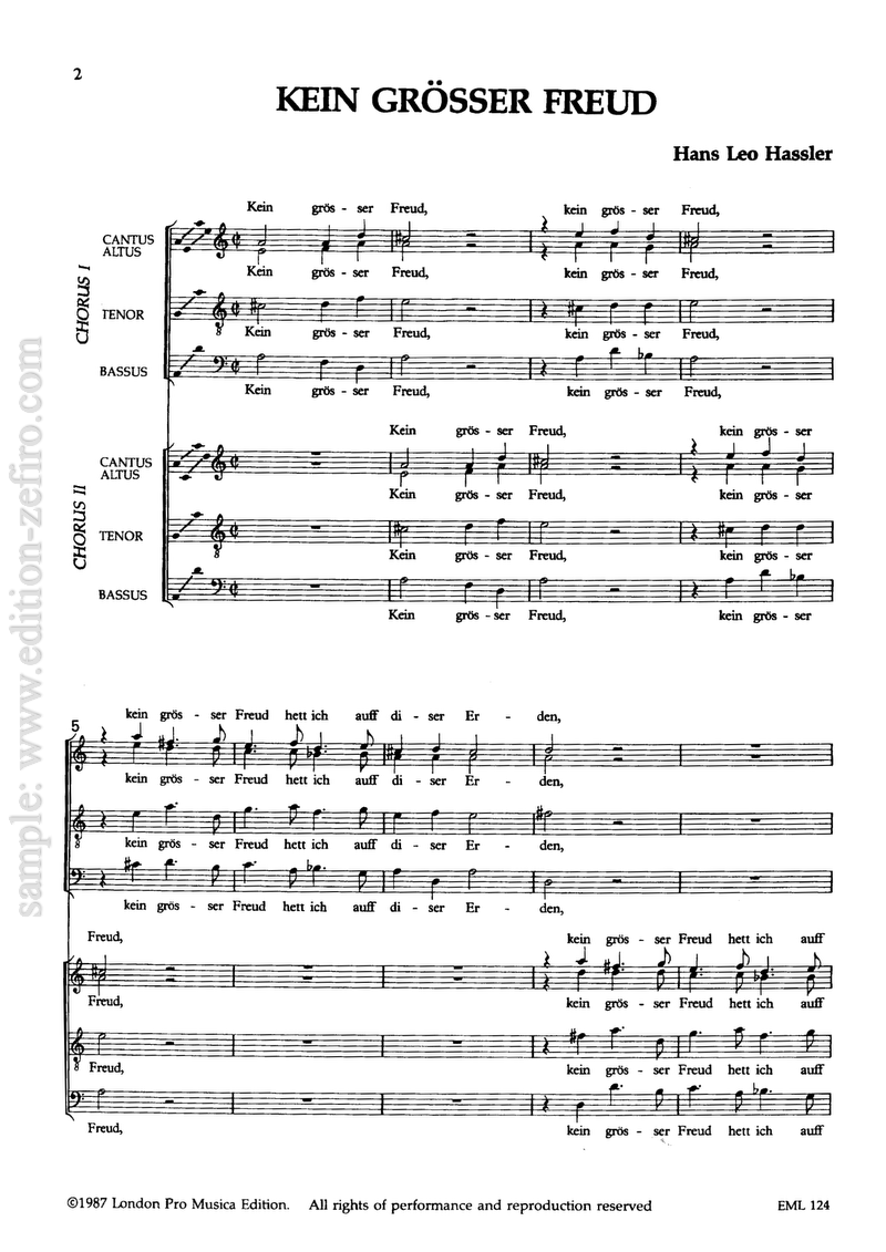 Categories: Instrumental music, Vocal music. Tags: 1600, 2 choirs, 8 part, Early Baroque, EML, German, Hans Leo Hassler, Motet, SATB + SATB.