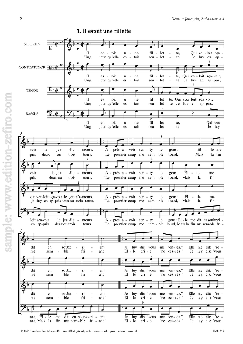 Clément Janequin was famous for his long programatic chansons like La Guerre, but he also wrote normal short chansons like Il estoit une fillette, M’y levay par ung matin.