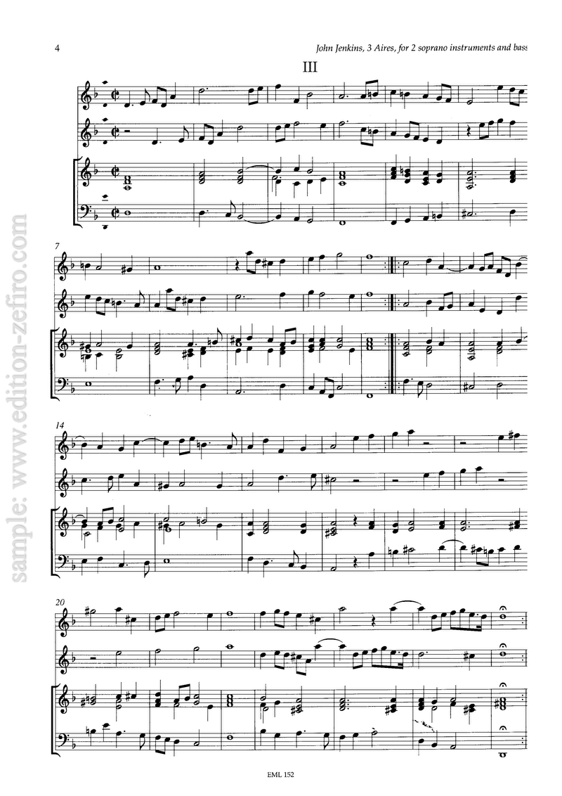 John Jenkins (1592-1678) was a prolific and long-living composer of rather conservative viol music. He wrote serious fantasies and lighter ayres like the three printed here.