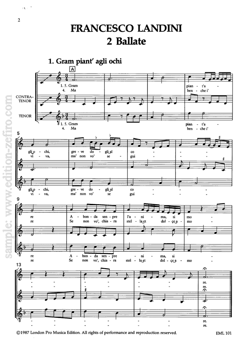 Contains 2 of Landini’s most famous pieces, Gram piant’ agli occhi and Charo singnor. Landini was the greatest Italian composer of the 14th century, contemporary with Petrarch and Boccaccio. His music is quite accessible, more so than that of most of his contemporaries, and has wonderful sinuous melodies.