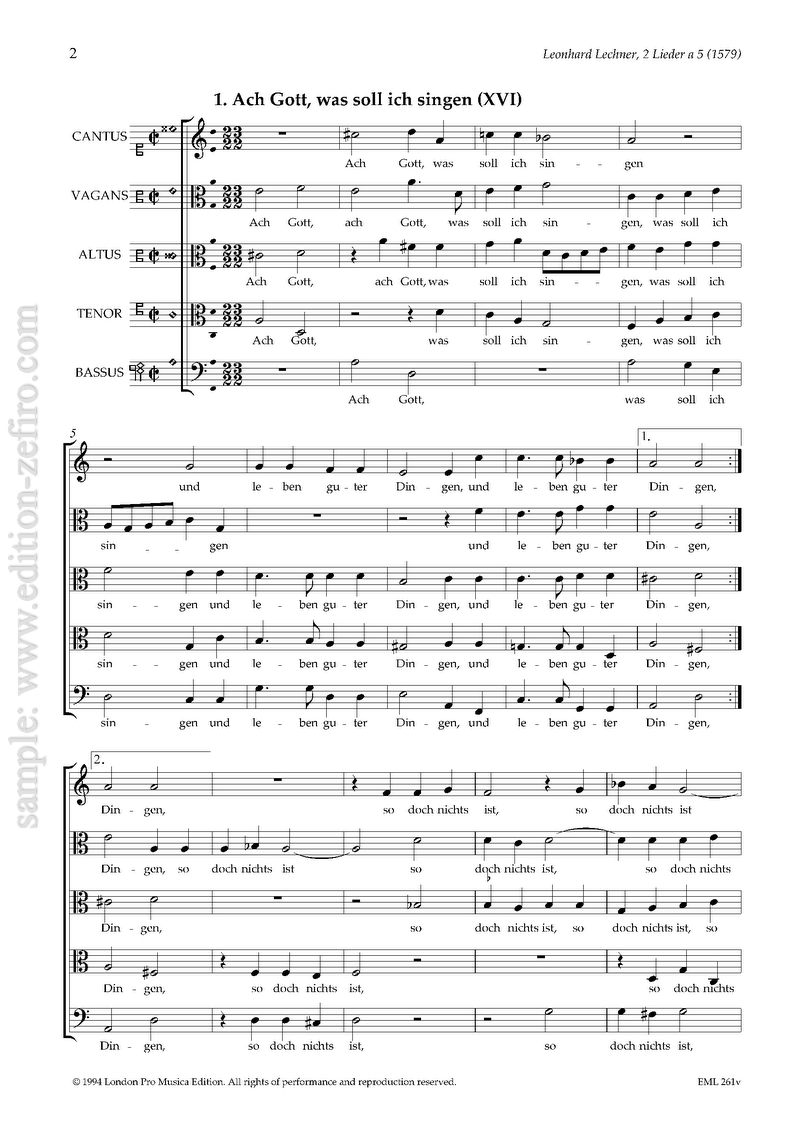 Lechner was much influenced by Italian music: he composed proper madrigals with Italian texts, and German songs in a very Italian style. Harmonically speaking, he was the most advance German-speaking composer of his time.