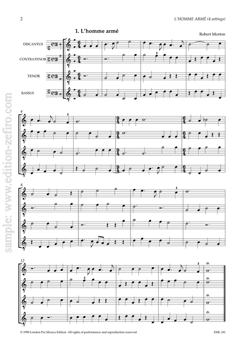 The L‘homme armé melody became a theme particularly for masses. It is a strong melody very suitable for this kind of treatment. In this selection we have four settings by Robert Morton, Johannes Japart, Josquin des Prés and of course Anonymous.
