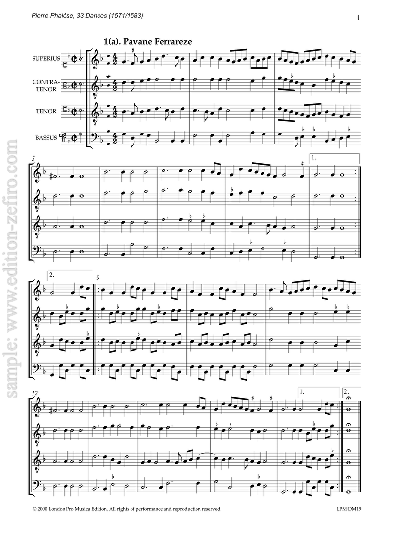 Most of the dances in Pierre Phalese’s collections of 1571 and 1583 were stolen from other publications, especially those of Jean d’Estrees. This edition includes all the pieces that were not stolen.