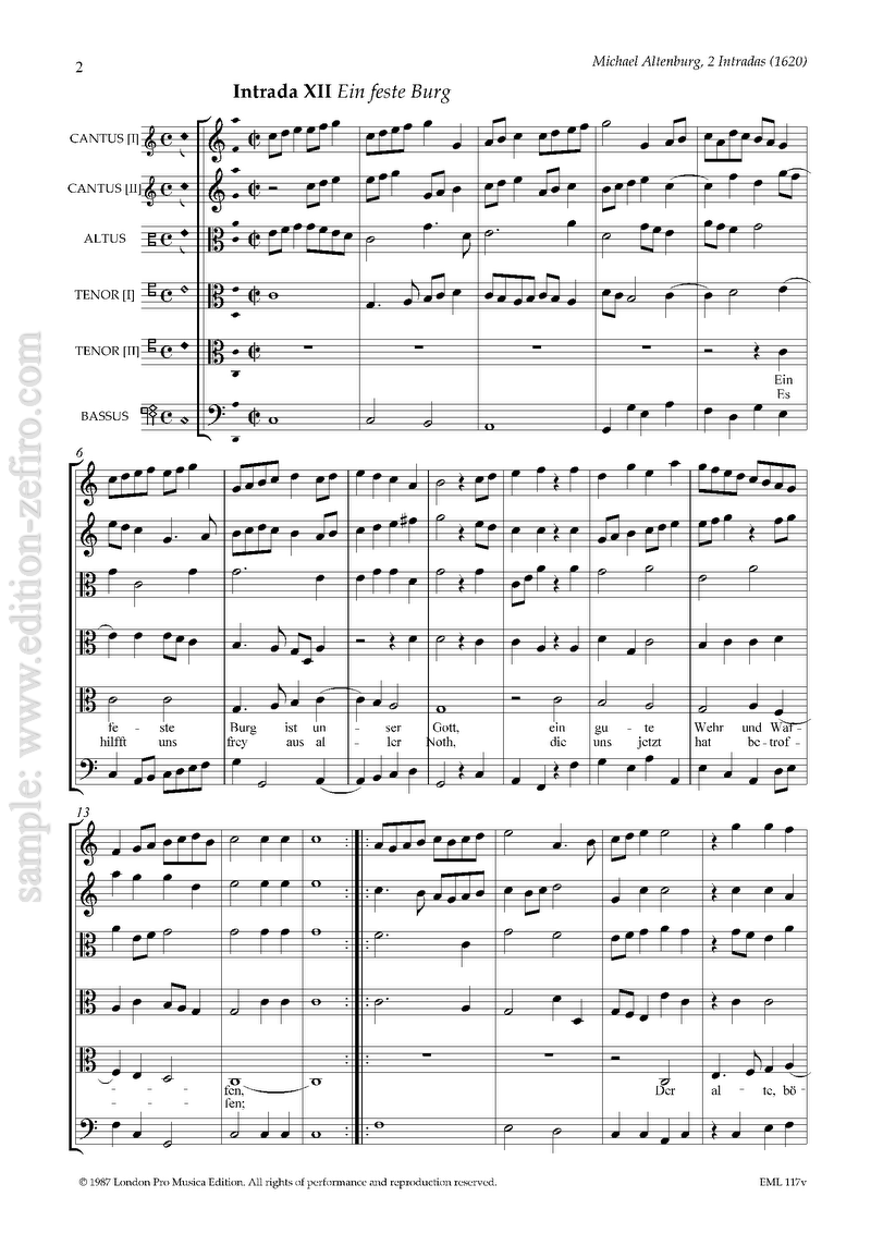 These two Intradas by Michael Altenburg come from a collection, all of which are based on classic Lutheran chorales.