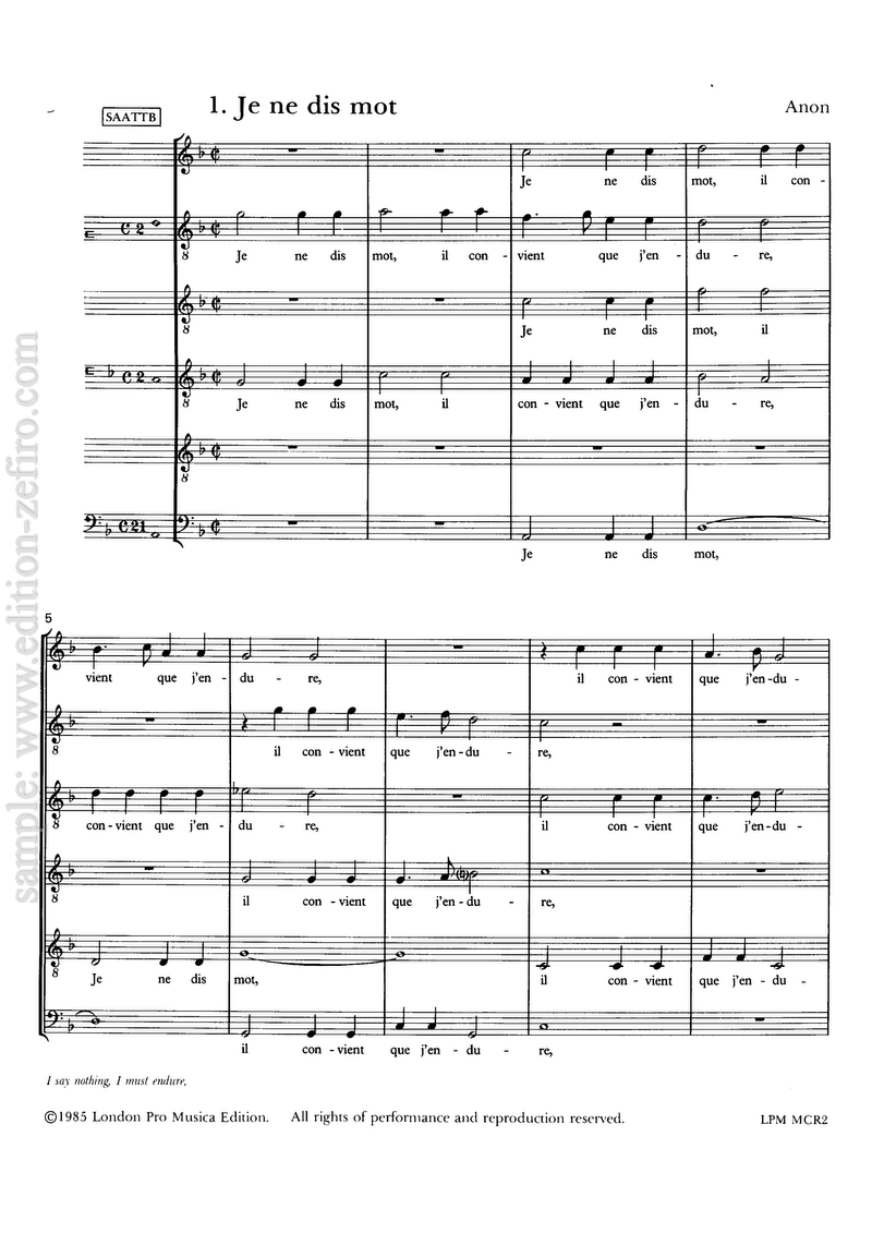 This anthology of music suitable for 5 and 6 crumhorns includes music from a wide variety of sixteenth-century sources. None of the pieces can be shown to be originally intended for crumhorns; the criterion for inclusion is purely that the piece works on those instruments with the minimum of tinkering – alteration of a few isolated notes, and occasional swapping around of parts for odd phrases. I would expect this collection to be useful also for mixed groups of crumhorns, dulcians, sackbuts, etc.: now that proper crumhorns with real reeds are available, such combinations become possible. Where parts go beyond the range of crumhorns, alternatives have been supplied in small notes, sometimes, as in the Franck Intrada (no 17, top part) a preferable option would be to have some other instrument on the part in question, here perhaps a mute cornett. And in the two pieces based on a cantus firmus (Verleih uns Frieden gnädiglich and Conditor alme siderum) the use of contrasting instruments (or voices) on the melody parts is greatly to be recommended.
