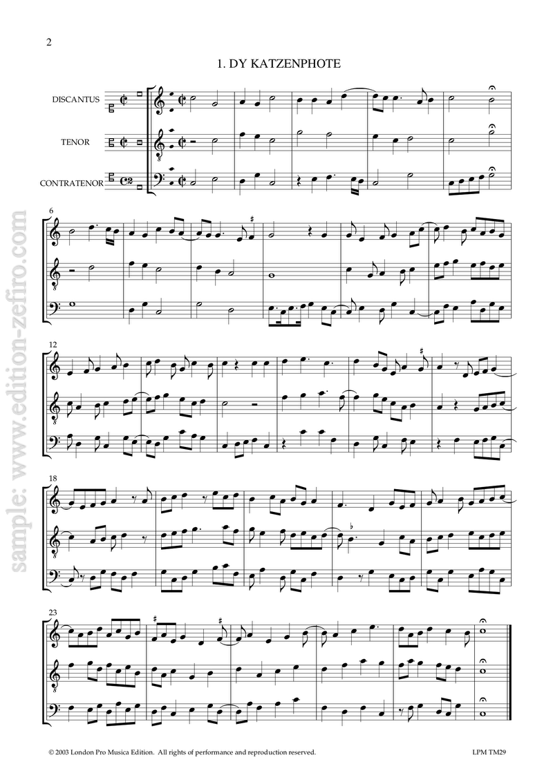 Mixed in with the predominantly vocal repertoire in GL are a few pieces apparently intended purely for instruments, such as the seven printed here. Many of these have titles such as Dy katzenphote (“the cat’s paw”), that refer to animals, or at least parts of them, or are fancifully descriptive in some other way. It would be nice to be able to associate these titles with a particular style of writing, with a specific instrumental genre, but unfortu- nately it is not really possible to do so: some of the pieces are complicated rhythmically in the way that Dy katzenphote is, but others are more straightforward and dance-like, for example Der newe pawir schwantz. Moreover, these strange titles are sometimes applied to French songs supplied with sacred texts…