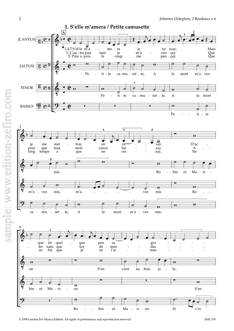 This includes Johannes Ockeghem’s settings of Petite camusette (probably the oldest setting of this tune).