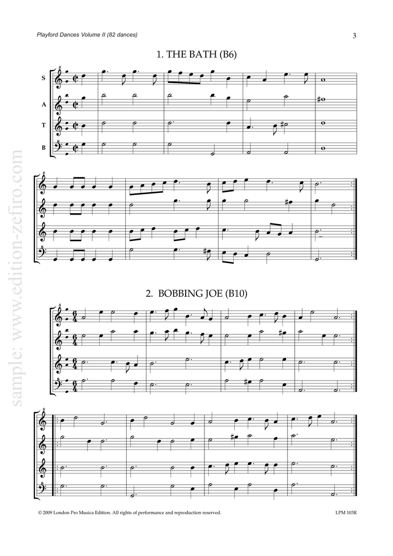 This second volume of Playford arrangements includes tunes from the later Playford editions, going into the Purcell era. (82 dances)