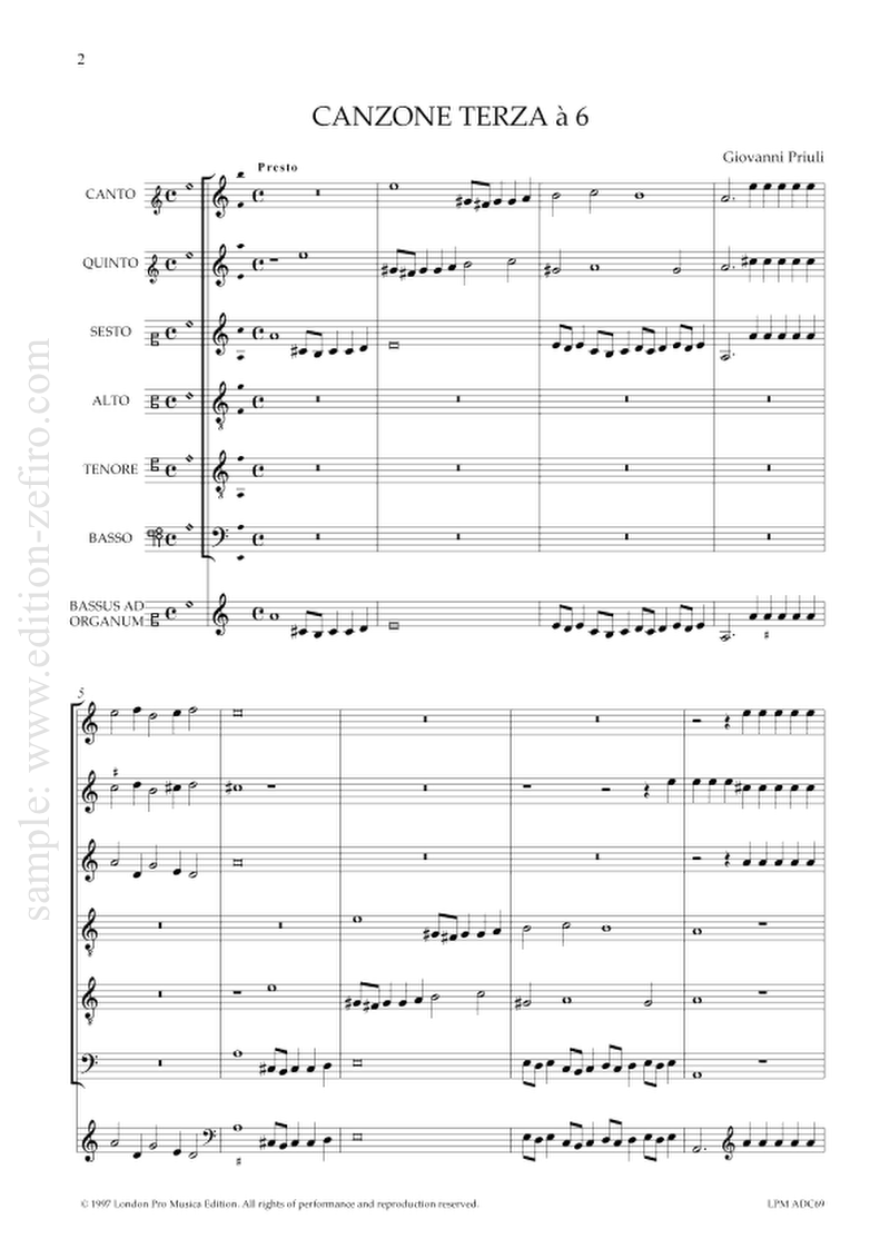 Like many other works by Priuli, this piece is relatively unusual for its time in having several changes of tempo marked – presto and tardo (slow).